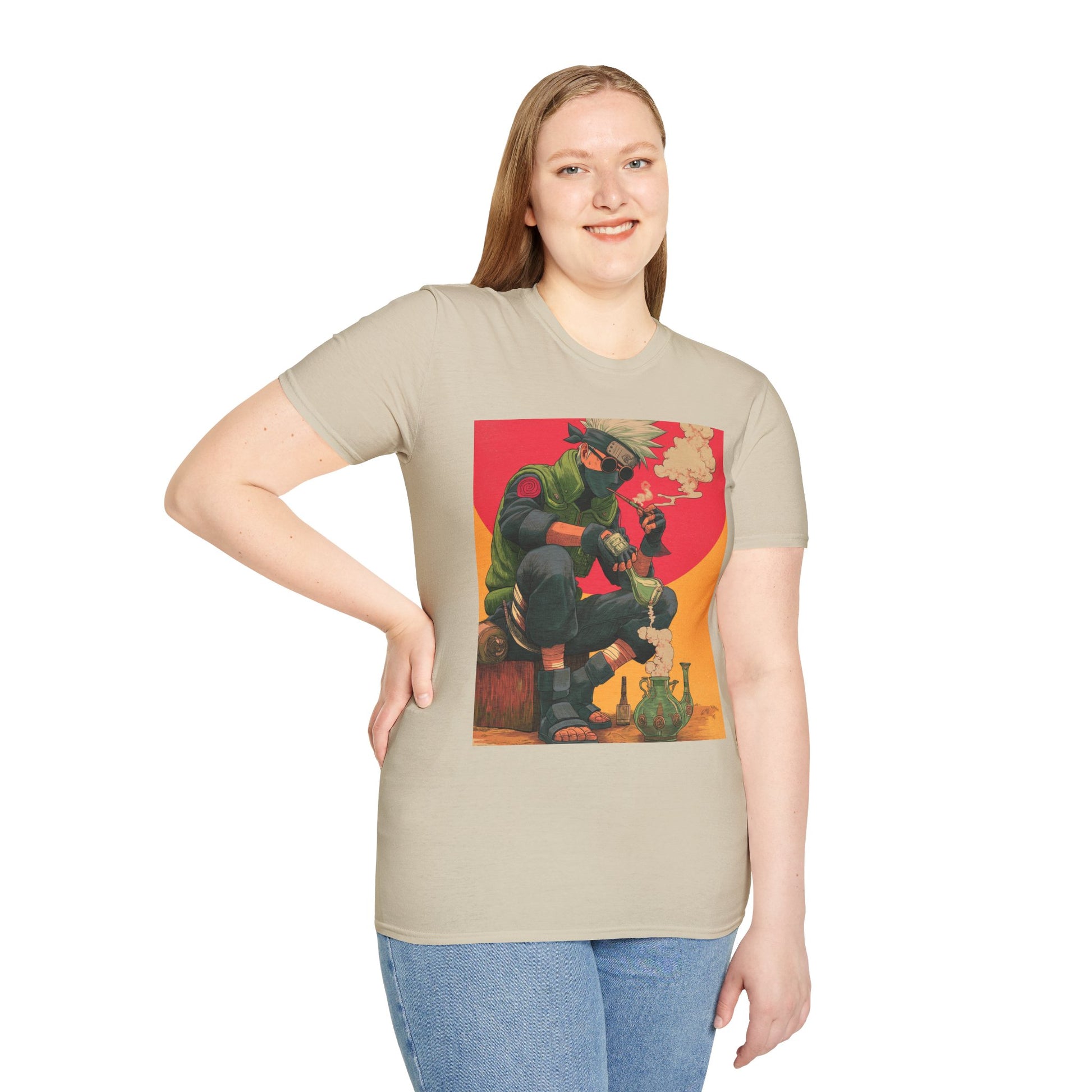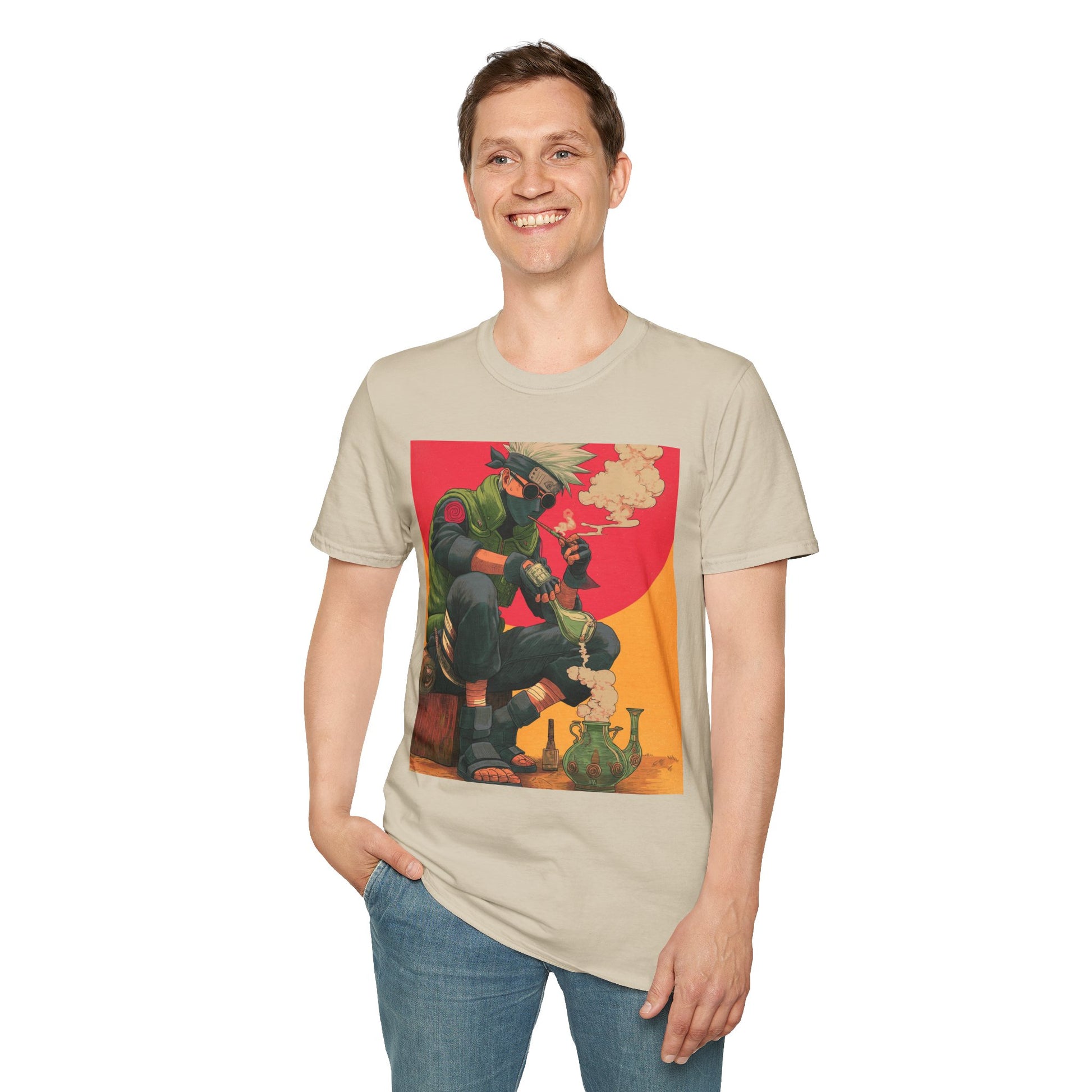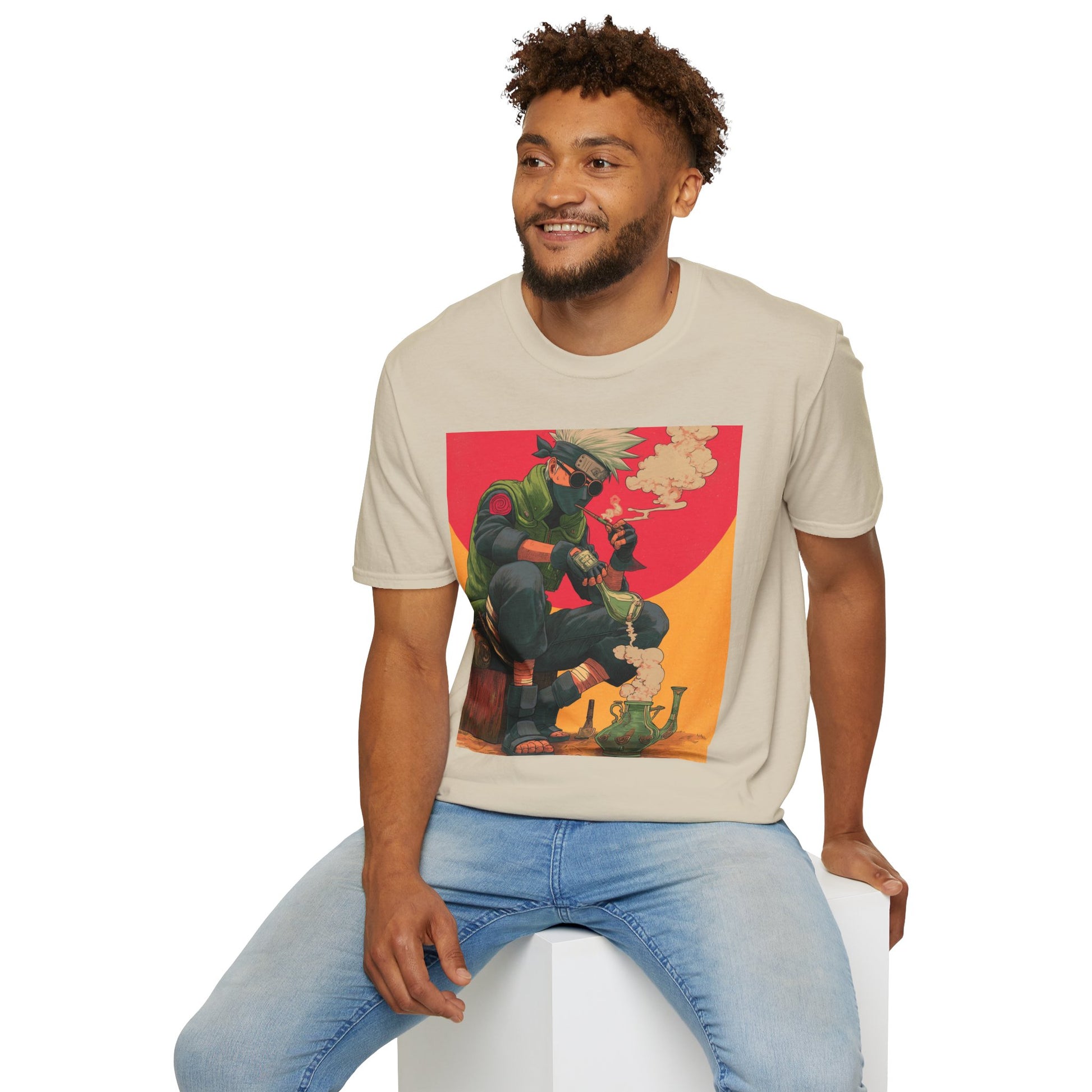 This exclusive tee captures the legendary jōnin in a rare moment of calm—vest on, pipe in hand, framed by a bold red and yellow aura. Designed for anime lovers and streetwear enthusiasts, it’s a tribute to legacy, loyalty, and low-key strength.