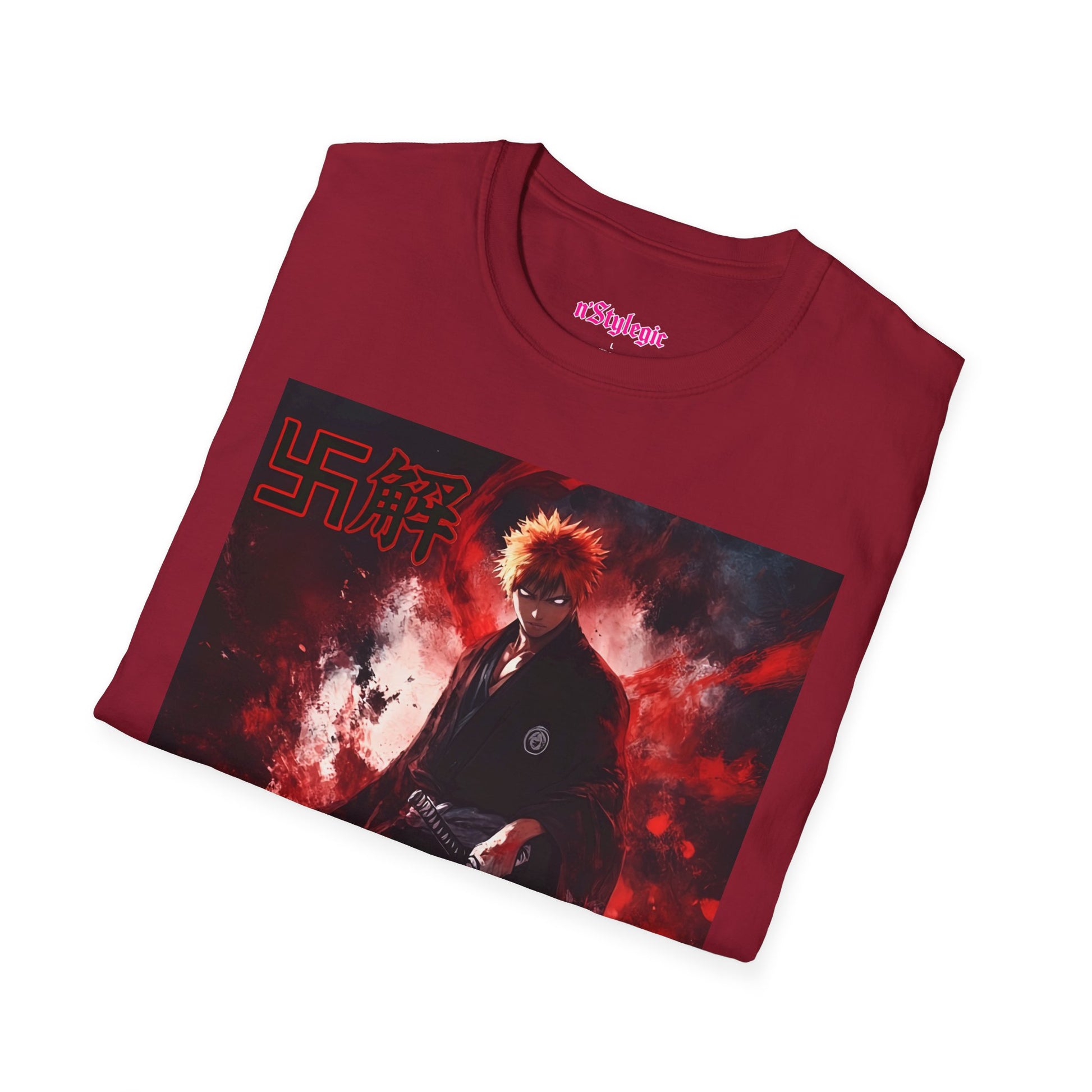 Channel the power of a true soul reaper with the Shinigami: Bankai! Tee, featuring a fierce, battle-ready Ichigo with his spiky orange hair and a flowing black kimono. Set against a swirling red-and-black backdrop, this design radiates energy, transformation, and the moment of ultimate release. The bold kanji Bankai, marks the awakening of unstoppable force.