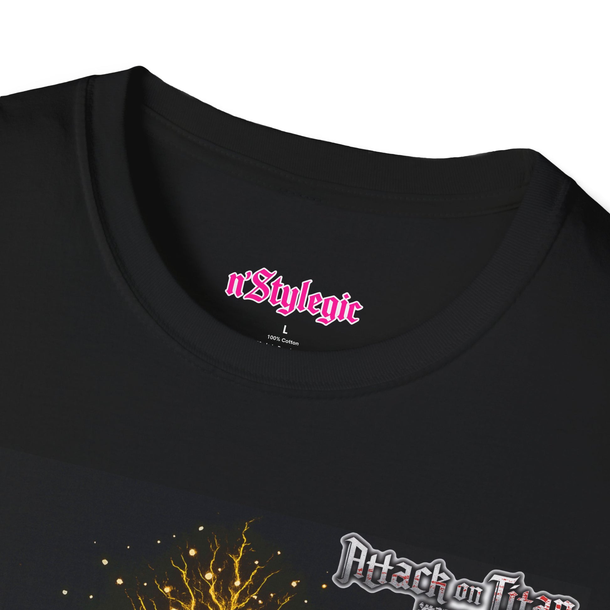 Where all Titans converge. Where fate begins. The Coordinate Surge Tee features the legendary lightning-formed tree from the end credits of Attack on Titan Season 4—a visual metaphor for the Paths, the origin of Titan power, and the unseen threads connecting every Eldian. With glowing yellow branches exploding outward against a stark black canvas, this design evokes mystery, energy, and mythic scale.